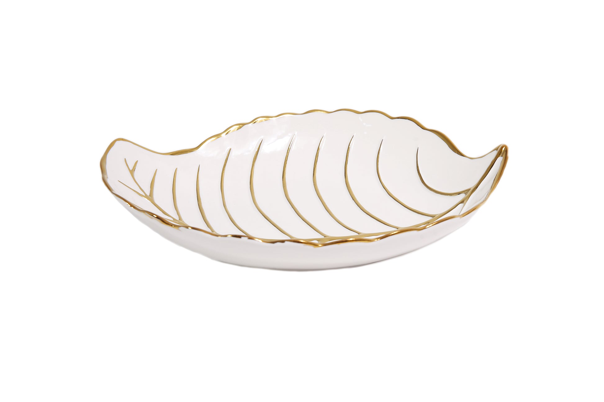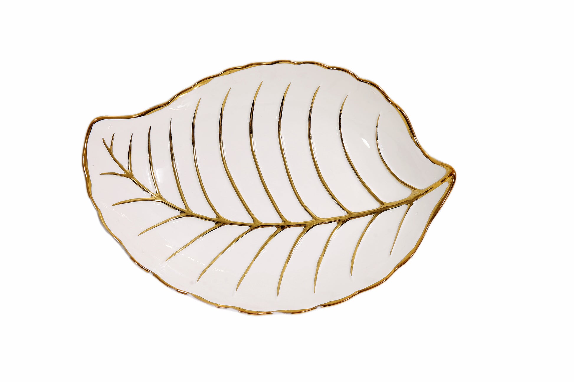 Elegant Leaf Ceramic Plate – Gold & Silver Vein Trim Options