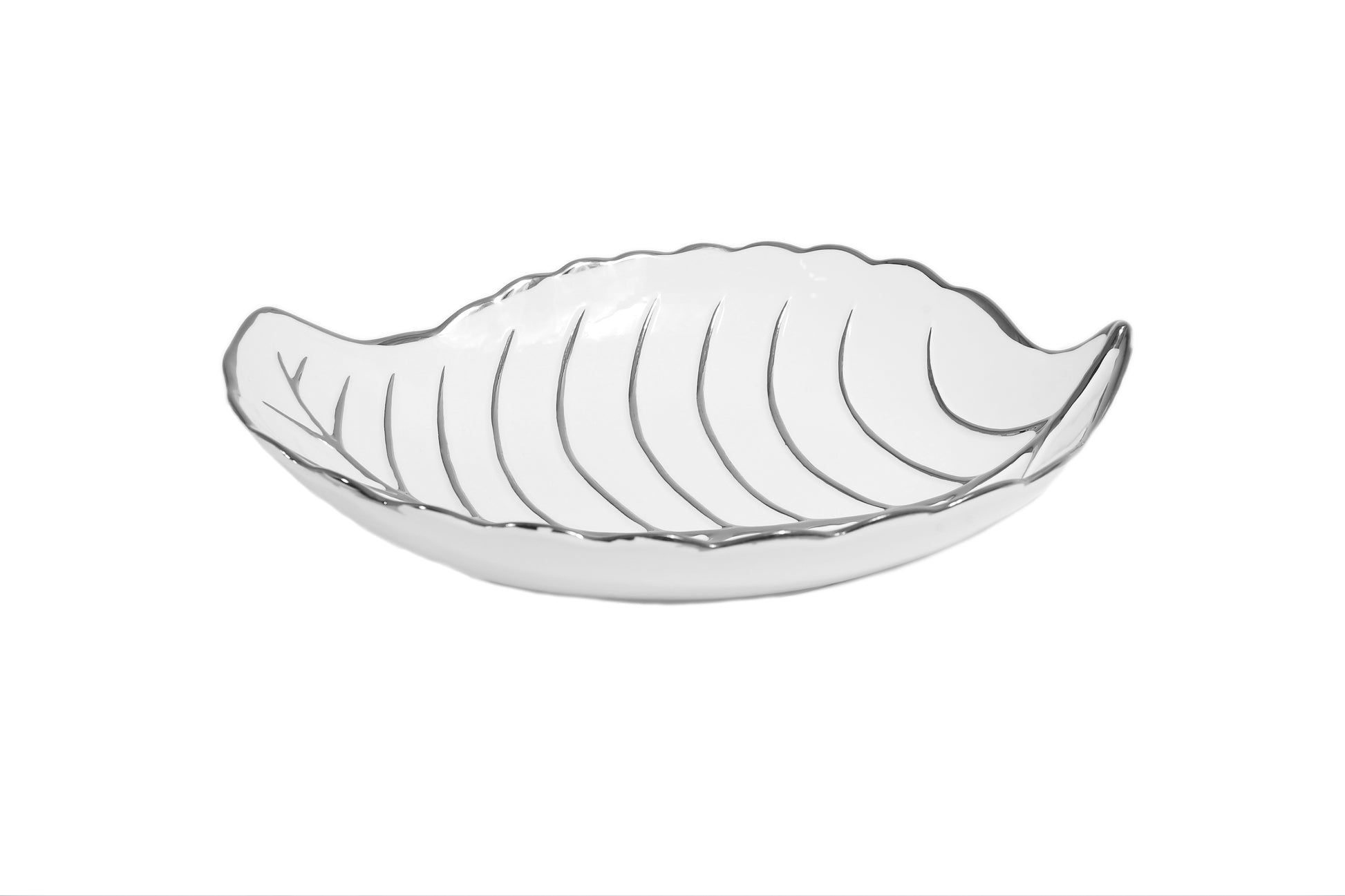 Add a touch of refined elegance to your serveware with our stunning leaf-shaped ceramic plate, delicately outlined with luxurious metallic veins. Available in two timeless finishes – radiant gold or sleek silver – this plate is perfect for serving dry snacks, nuts, desserts, or simply as a decorative accent.
