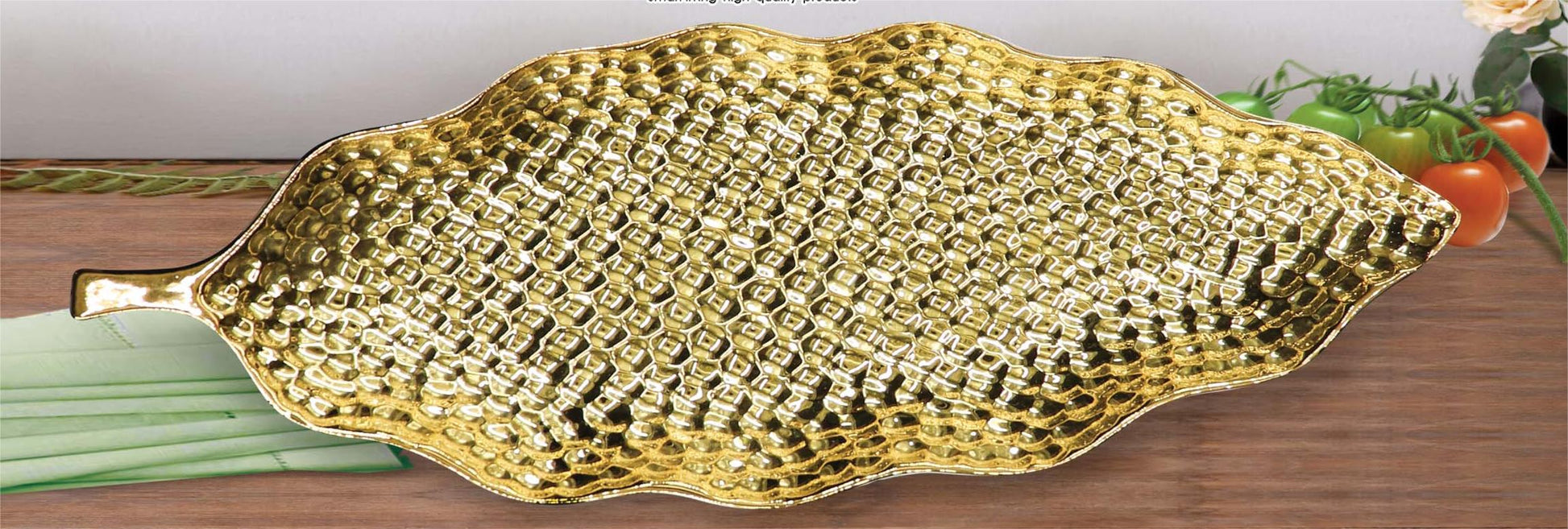Leaf-Shaped Embossed Ceramic Serving Platter – Gold & Silver Finish