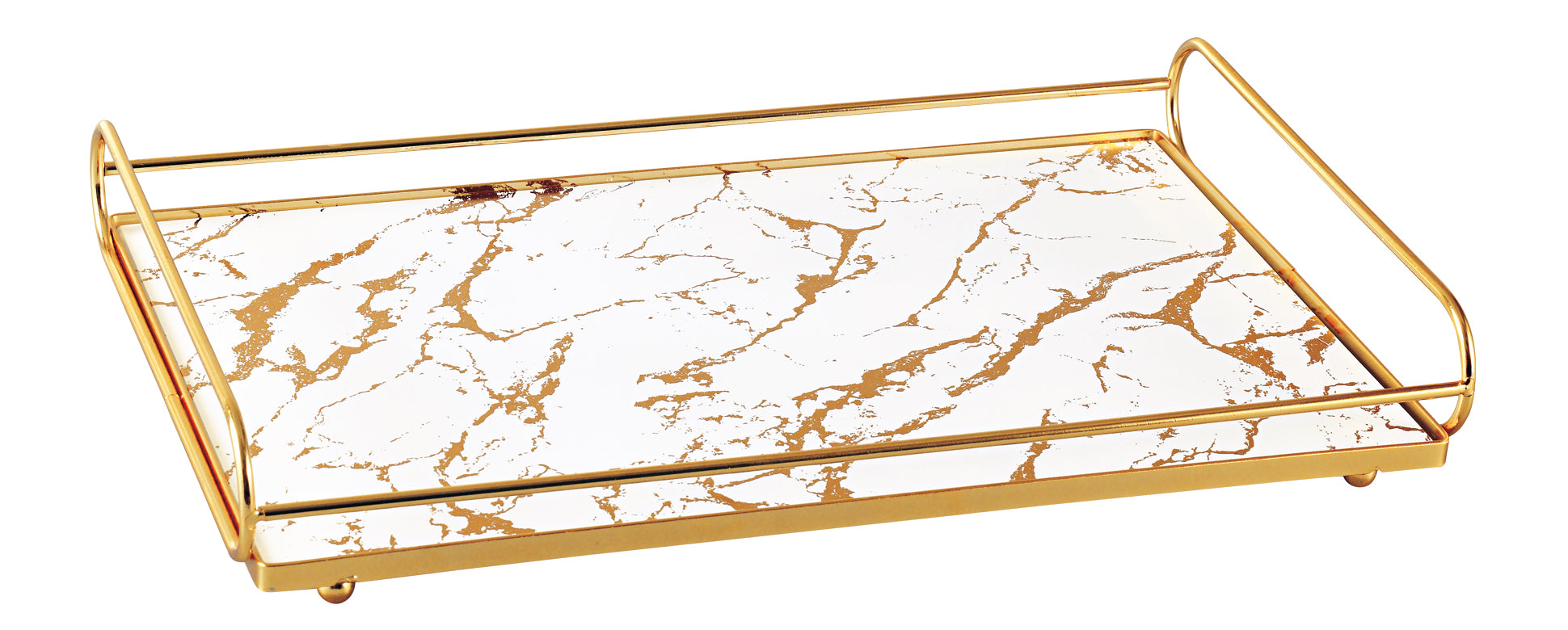 Rectangular Gold Frame Decorative Tray with Printed Glass Base
