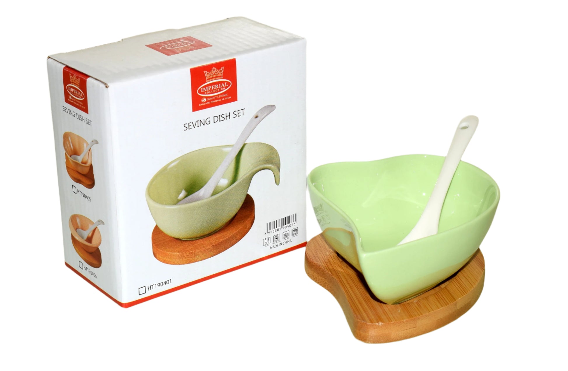 Includes: 1 ceramic bowl, 1 ceramic spoon, 1 bamboo base
